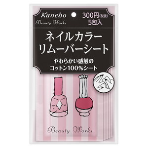カネボウの除光液(リムーバー) 型番:ビューティワークス ネイルカラーリムーバーシート 5包 を買取価格相場 〜100円で買取致します! |
